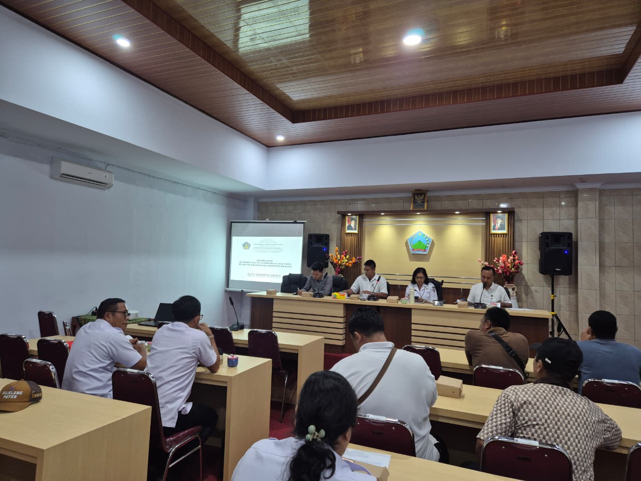 Bidang Perumahan Dinas Perkimta Buleleng menghadiri rapat pembahasan Laporan Akhir DED Rehabilitasi PSU Permukiman di Desa Tajun yang berlangsung di Kantor Perbekel Tajun.