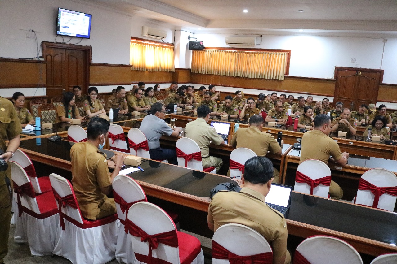 Senin, 29 September 2025. Kadis Perkimta Buleleng Ni Nyoman Surattini bersama Plt Sekdis Perkimta Nyoman Sriyadnya hadiri undangan Sosialisasi Peraturan Bupati Nomor 9 Tahun 2025 Tentang Pedoman Pengelolaan Pengaduan Dilingkungan Pemerintah Daerah yang berlangsung di Ruang Rapat Unit IV Kantor Bupati Buleleng.