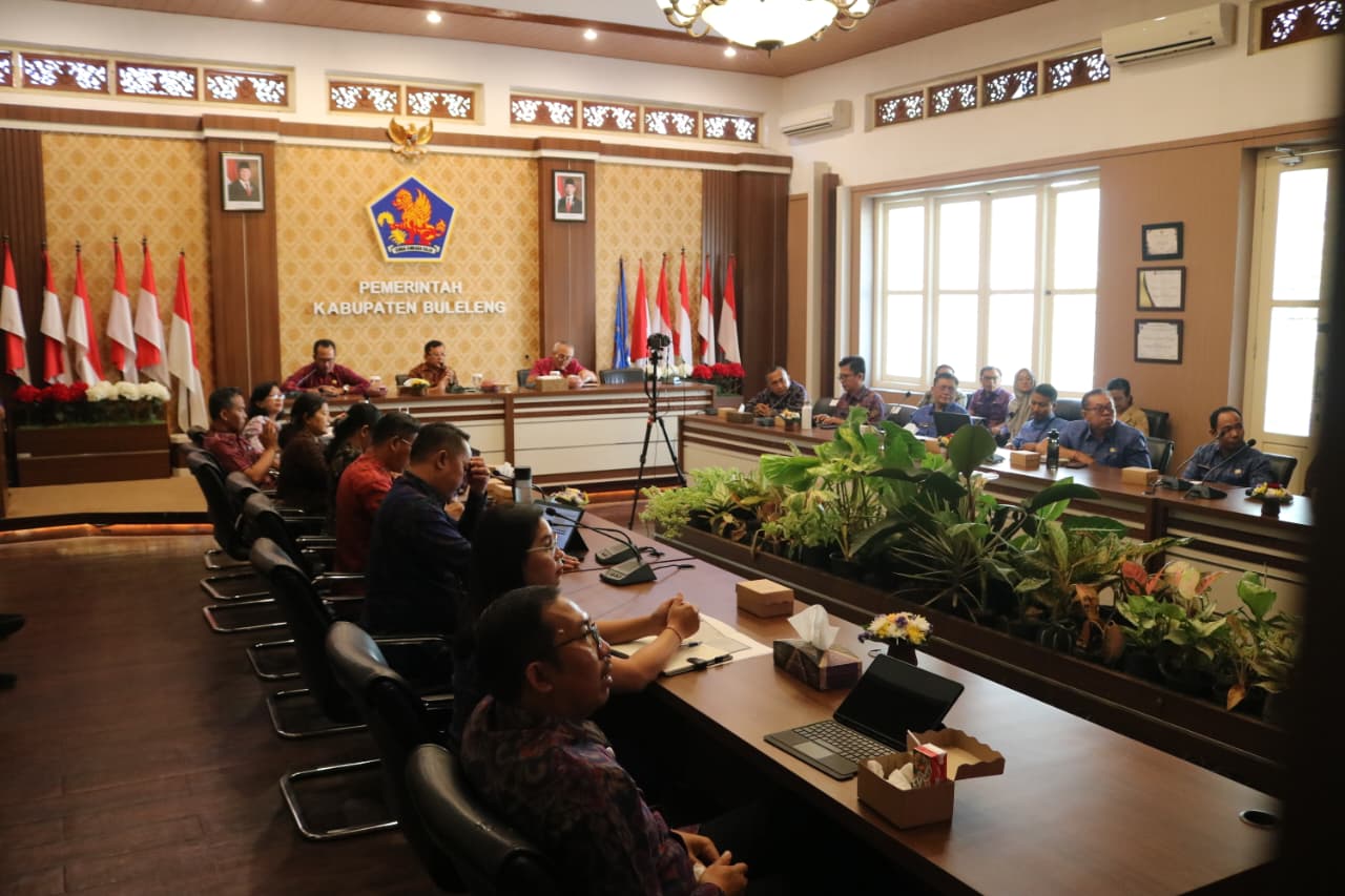 Selasa, 14 Oktober 2025. Kadis Perkimta Buleleng Ni Nyoman Surattini bersama Pejabat Fungsional Penata Kelola Perumahan Ahli Muda turut hadir di ruang rapat lobby Kantor Bupati Buleleng dalam agenda Zoom Meeting terkait Progress Rencana Aksi Tindak Lanjut Survei Peninailan Integritas (SPI) Pemkab Buleleng Tahun 2024.